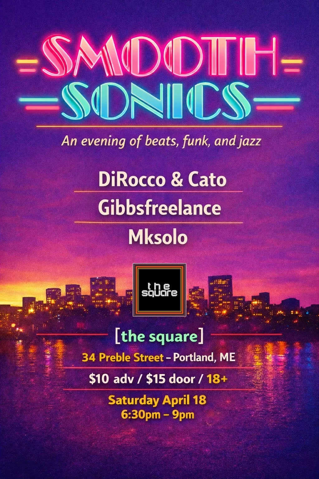 An evening of beats, funk and jazz, featuring the talents of DiRocco & Cato, Gibbsfreelance, and Mksolo.